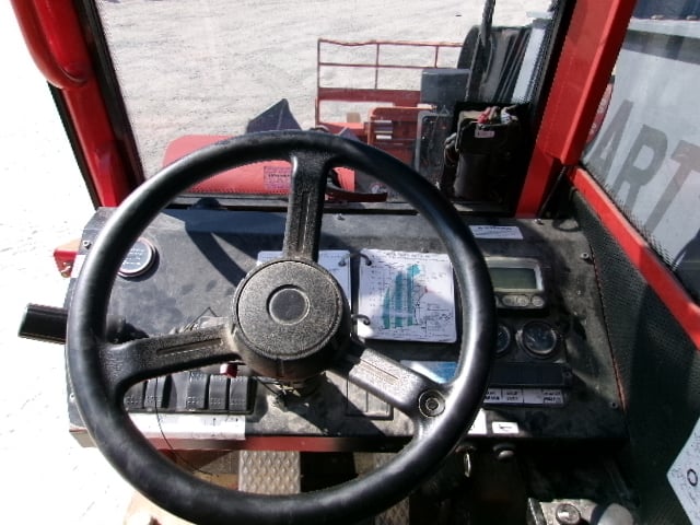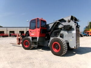 Factory Enclosed CAB w/ HEAT & AC, Outriggers/Stabilizers, Cummins Turbo Diesel Engine – 168HP, Pneumatic Tires, 4WD, Crab-Steering, Frame Leveling, Dual Auxiliary Hydraulics, 84” Side-Shift Fork Positioner Carriage w/ 96″ Forks, Serviced 3/24/25 @ 3424 Hours, Fleet Maintained, Weighs 46500lbs