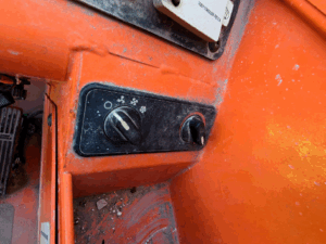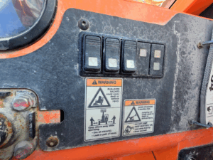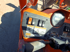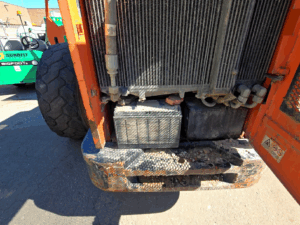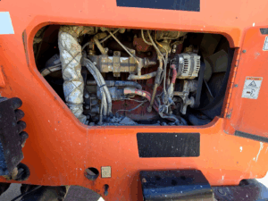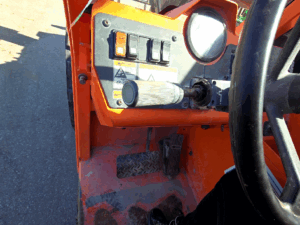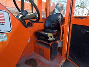 Factory Enclosed CAB w/ HEAT (Missing Upper Door Glass), Outriggers/Stabilizers, Cummins Turbo Diesel Engine – 110HP, Foam Filled Tires, 4WD, Crab-Steering, Frame Leveling, Auxiliary Hydraulics, Quick Tach, QC Carriage w/ Forks, Fleet Maintained