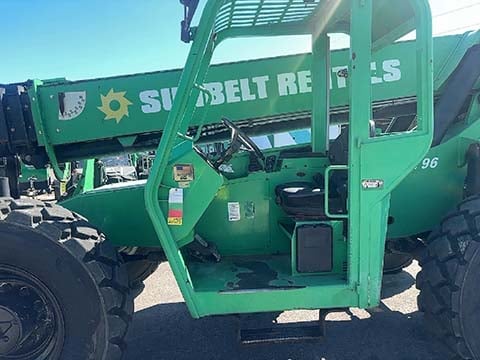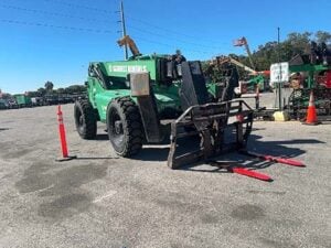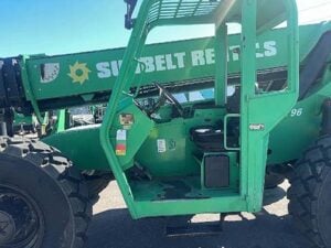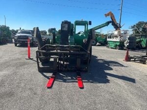 Outriggers/Stabilizers, Cummins Turbo Diesel Engine – “No DEF” 74HP, Foam Filled Tires, 4WD, Crab-Steering, Frame Leveling, Auxiliary Hydraulics, Quick Tach, QC Carriage w/ Forks, Fleet Maintained, Weighs 31500lbs