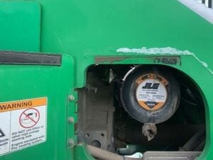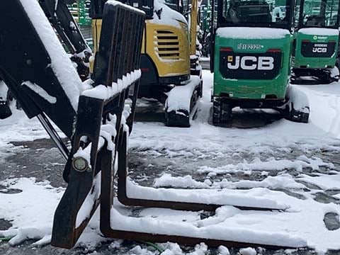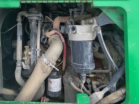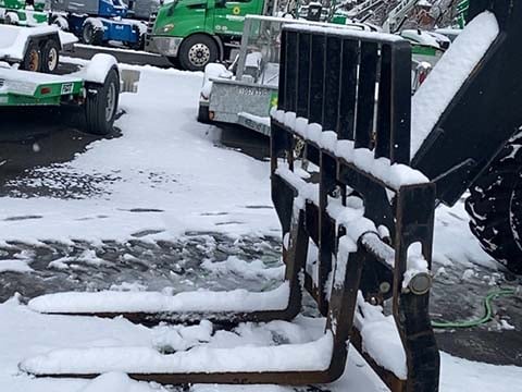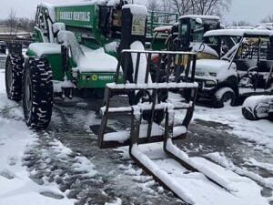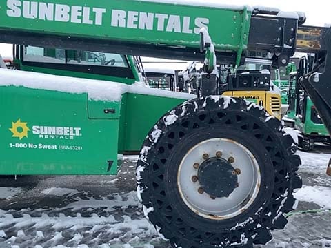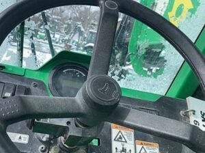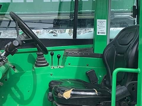 Factory Enclosed CAB w/ HEAT, Cummins Turbo Diesel Engine – “No DEF” 74HP, Solid BOSS Tires, 4WD, Crab-Steering, Frame Leveling, Auxiliary Hydraulics, Quick Tach, QC Carriage w/ Forks, Fleet Maintained, Weighs 23550lbs
