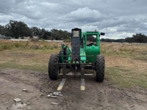 Cummins Turbo Diesel Engine – “No DEF” 74HP, Foam Filled Tires, 4WD, Crab-Steering, Frame Leveling, Auxiliary Hydraulics, Quick Tach, QC Carriage w/ Forks, Fleet Maintained