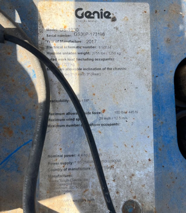 Home – Products – Scissor Lifts – 2017 GENIE GS-1930 – Used Scissor Lift