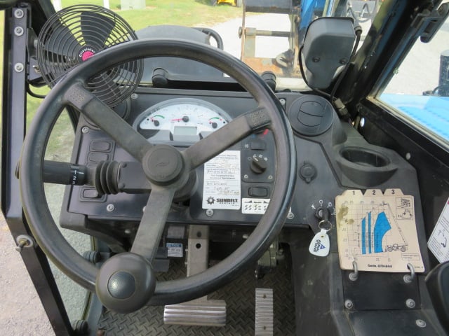 Factory Enclosed CAB w/ HEAT, Deutz Turbo Diesel Engine – “No DEF” 74HP, Foam Filled Tires, 4WD, Crab-Steering, Fenders, Frame Leveling, Auxiliary Hydraulics, Quick Tach, QC Side-Tilting Carriage w/ Forks, Fleet Maintained, Weighs 24143lbs