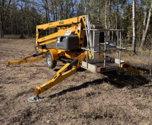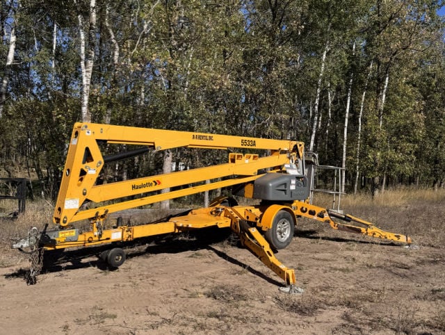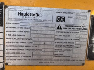 DC Electric Motor (NEW Batteries Installed 4/2025), Auto-Leveling Hydraulic Outriggers/Stabilizers, Power to Platform, JIB, 4′ Platform, Weighs 4602lbs