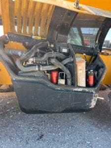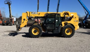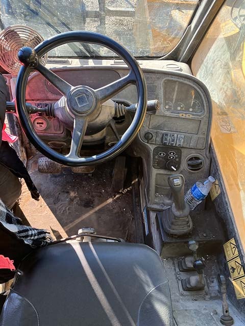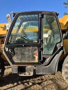 Factory Enclosed CAB w/ HEAT & AC (NEW Door Installed), JCB Turbo Diesel Engine w/ Block Heater, Foam Filled Tires, 4WD, Crab-Steering, Fenders, Lift Hook, Frame Leveling, Auxiliary Hydraulics, Quick Tach, QC Carriage w/ 48” Forks, Fleet Maintained, Weighs 23210lbs