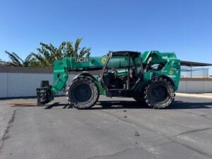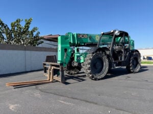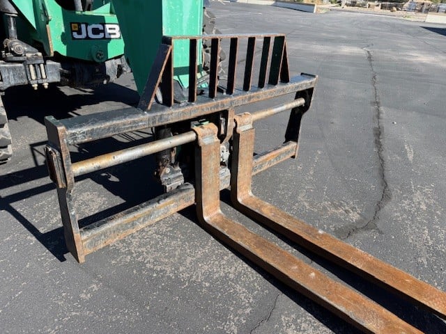 JCB Turbo Diesel Engine, 4WD, Solid BOSS Tires, Crab-Steering, Fenders, Lift Hook, Frame Leveling, Auxiliary Hydraulics, Quick Tach, QC Side-Tilting Carriage w/ Forks, Fleet Maintained
