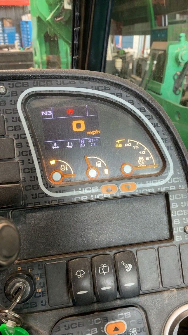 Factory Enclosed CAB w/ HEAT, JCB Turbo Diesel Engine, Foam Filled Tires, 4WD, Crab-Steering, Fenders, Frame Leveling, Auxiliary Hydraulics, Quick Tach, QC Side-Tilting Carriage w/ Forks, Fleet Maintained