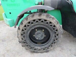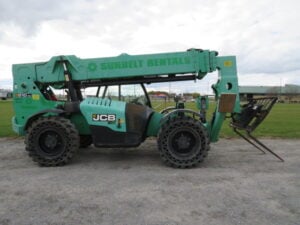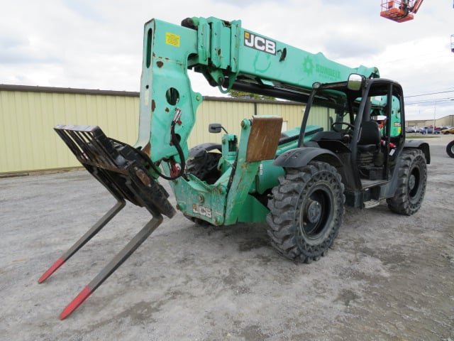 Outriggers/Stabilizers, JCB Turbo Diesel Engine, Solid BOSS Tires, 4WD, Crab-Steering, Fenders, Frame Leveling, Auxiliary Hydraulics, Quick Tach, QC Carriage w/ Forks, Fleet Maintained, Weighs 31145lbs