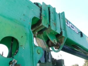 Outriggers/Stabilizers, JCB Turbo Diesel Engine, Foam Filled Tires, 4WD, Crab-Steering, Fenders (FL Missing), Lift Hook, Frame Leveling, Auxiliary Hydraulics, Quick Tach, QC Side-Tilting Carriage w/ Forks, Fleet Maintained