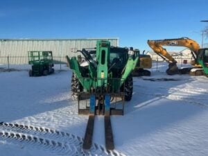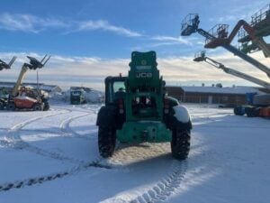 Factory Enclosed CAB w/ HEAT, Outriggers/Stabilizers, JCB Turbo Diesel Engine, Solid BOSS Tires, 4WD, Crab-Steering, Fenders, Work Lights, Lift Hook, Frame Leveling, Auxiliary Hydraulics, Quick Tach, QC Side-Tilting Carriage w/ Forks (Lumber Forks Will Be Removed Prior to Shipment), Fleet Maintained, Weighs 29632lbs