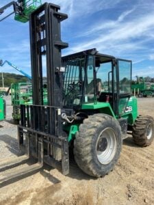 Factory Enclosed CAB w/ HEAT, JCB Turbo Diesel Engine – “No DEF” 74HP, Pneumatic Tires, Switchable 2WD/4WD, 2- & 4-Wheel Steer, Crab Steering, Work Lights, Auxiliary Hydraulics, Side-Shifting Carriage w/ Forks, Fleet Maintained, Weighs 13977lbs