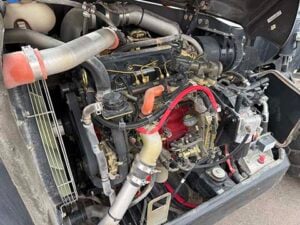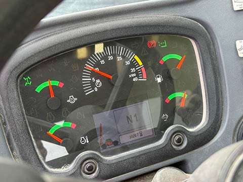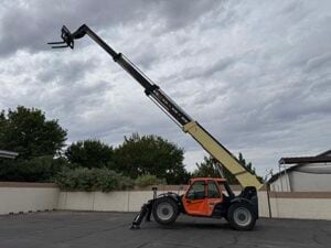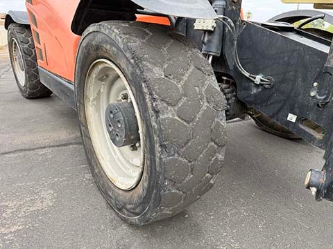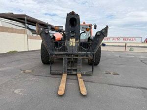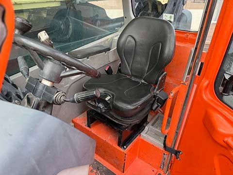 Factory Enclosed CAB w/ HEAT & AC, Outriggers/Stabilizers, Cummins Turbo Diesel Engine w/ Block Heater – 130HP, Foam Filled Tires, 4WD, Crab-Steering, Work Lights, Flashing Beacon, Fenders, Frame Leveling, Auxiliary Hydraulics, Quick Tach, QC Carriage w/ Forks, FRESH Service (Filters & Fluids), Fleet Maintained, Weighs 36536lbs