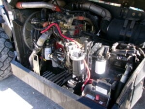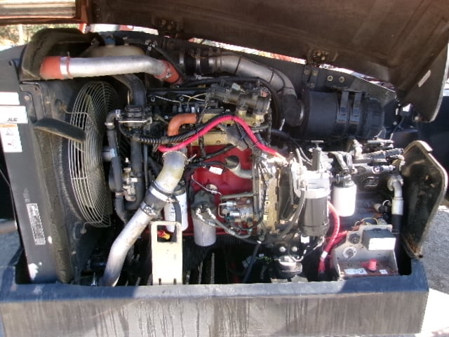 Factory Enclosed CAB w/ HEAT, Outriggers/Stabilizers, Cummins Turbo Diesel Engine w/ Block Heater – 130HP, Foam Filled Tires, 4WD, Crab-Steering, Fenders, Lift Shackle, Frame Leveling, Auxiliary Hydraulics, Quick Tach, QC Carriage w/ Forks, Fleet Maintained, Weighs 36536lbs