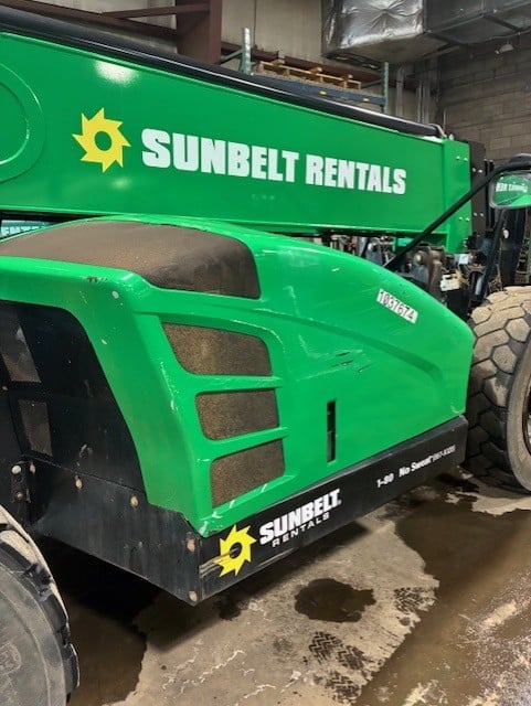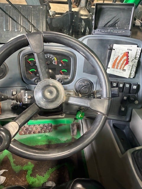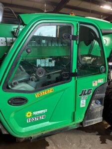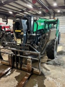 Factory Enclosed CAB w/ HEAT & AC, Outriggers/Stabilizers, Cummins Turbo Diesel Engine – 130HP, Foam Filled Tires, 4WD, Crab-Steering, Frame Leveling, Auxiliary Hydraulics, Quick Tach, QC Carriage w/ Forks, Fleet Maintained