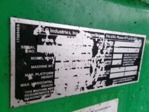 Hybrid – DC Electric – Batteries w/ Kubota Pup Motor (To Recharge Batteries), 4WD, Foam Filled Tires, 45% Gradeability, JIB, 5’ Platform, 500lbs Unrestricted Max Platform Capacity, Fleet Maintained, Weighs 10240lbs