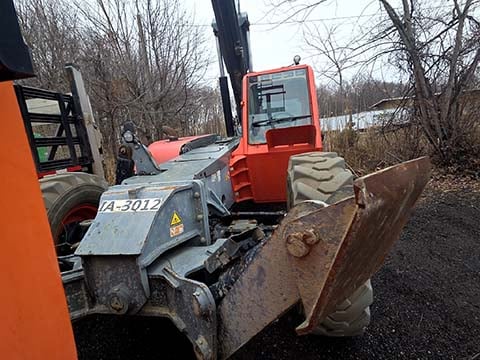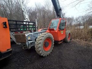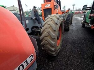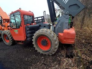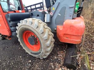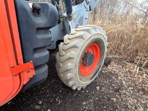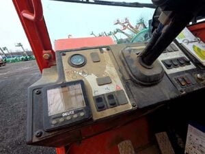 Factory Enclosed CAB w/ HEAT, Outriggers/Stabilizer, Deutz Turbo Diesel Engine – “No DEF” 74HP, Non-Marking Foam Filled Tires, 4WD, Crab-Steering, Lift Hook, Frame Leveling, Auxiliary Hydraulics, Quick Attach, QT Carriage w/ Forks, Fleet Maintained, Weighs 33190lbs