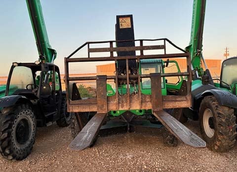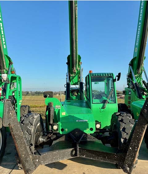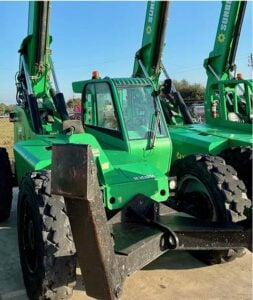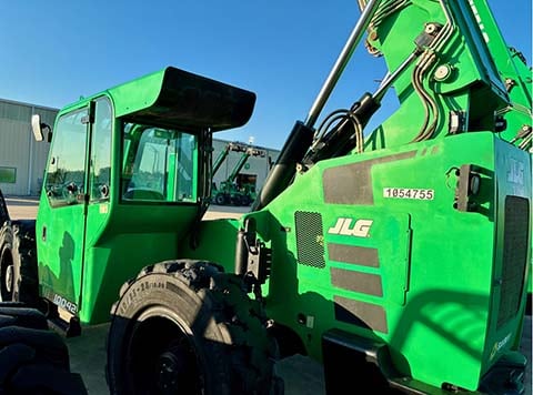 Factory Enclosed CAB w/ HEAT & AC, Outriggers/Stabilizers, Cummins Turbo Diesel Engine – “No DEF”74HP, Foam Filled Tires, 4WD, Crab-Steering, Flashing Beacon, Lift Shackle, Frame Leveling, Auxiliary Hydraulics, Quick Tach, QC Carriage w/ Forks, Fleet Maintained