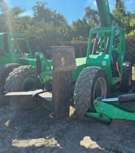 Outriggers/Stabilizers, Cummins Turbo Diesel Engine – “No DEF” 74HP, Foam Filled Tires, 4WD, Crab-Steering, Frame Leveling, Auxiliary Hydraulics, Quick Tach, QC Carriage w/ Forks, Fleet Maintained