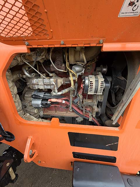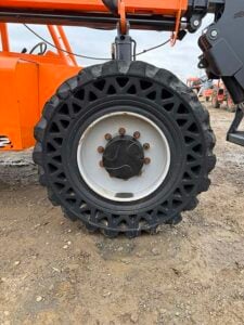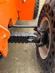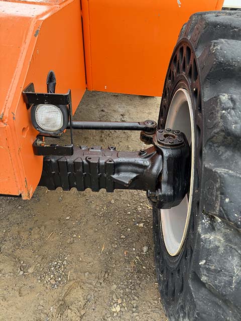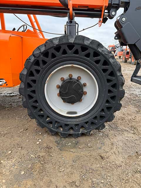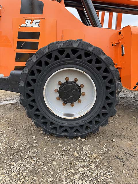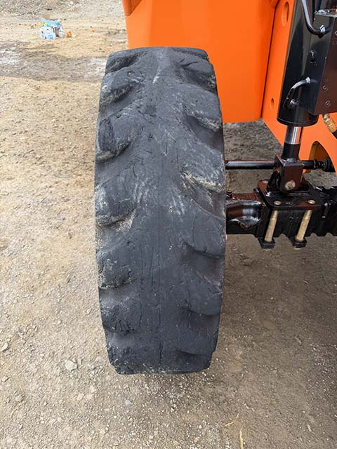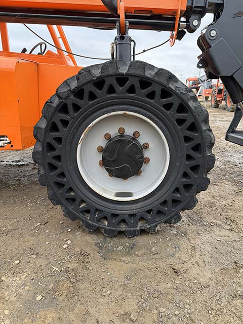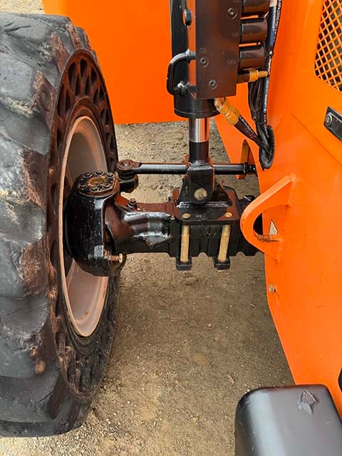 Cummins Turbo Diesel Engine – “No DEF” 74HP, Solid BOSS Tires, 4WD, Crab-Steering, Frame Leveling, Auxiliary Hydraulics, Quick Tach, QC Carriage w/ Forks, Fleet Maintained, Weighs 27400lbs