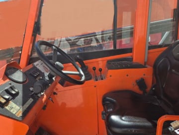 Factory Enclosed CAB w/ HEAT & AC, Cummins Turbo Diesel Engine w/ Block Heater – “No DEF” 74HP, Foam Filled Tires, 4WD, Crab-Steering, Frame Leveling, Auxiliary Hydraulics, Quick Tach, QC Carriage w/ Forks, Fleet Maintained