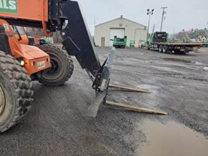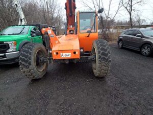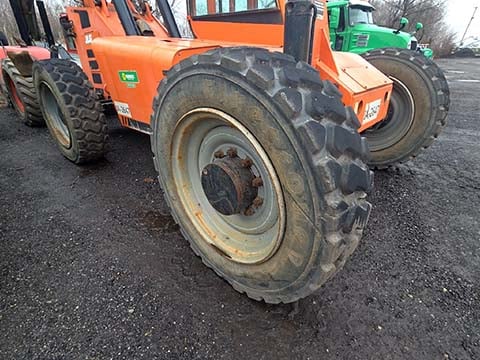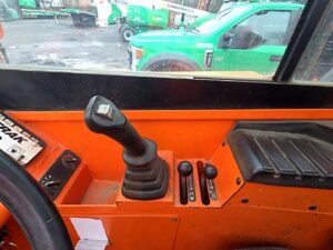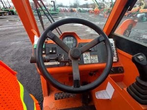 Factory Enclosed CAB w/ HEAT, Cummins Turbo Diesel Engine – “No DEF” 74HP, Foam Filled Tires, 4WD, Crab-Steering, Frame Leveling, Auxiliary Hydraulics, Quick Tach, QC Carriage w/ Forks, Fleet Maintained