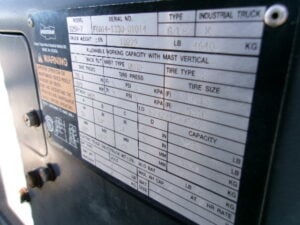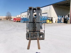 Nissan Dual Fuel Engine (Gas or Propane), 2WD, Solid Non-Marking Pneumatic Tires, LED Lights, Strobe Lights, Side Shift, 41″ Forks, Fleet Maintained, Weighs 10229lbs