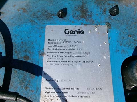 Home – Products – Scissor Lifts – 2018 GENIE GS-1930 – Used Scissor Lift