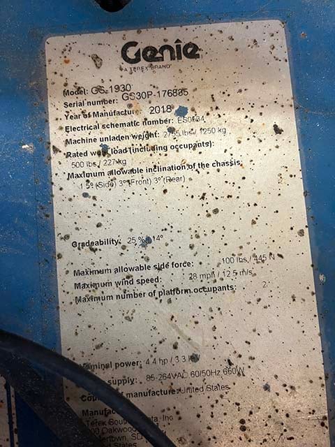 Home – Products – Scissor Lifts – 2018 GENIE GS-1930 – Used Scissor Lift