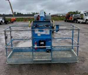 Deutz Turbo Diesel Engine – “No DEF” 74HP, 4WD, Foam Filled Tires, 45% Gradeability, Flashing Beacon, Generator & Welder Ready, JIB, 8′ Platform, Fall Arrest Protection System on Platform, Fleet Maintained, Weight 39292lbs