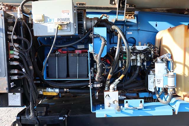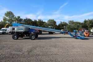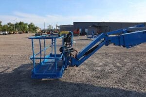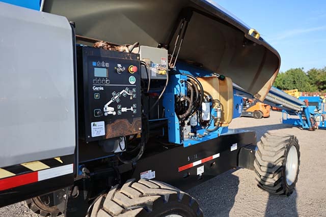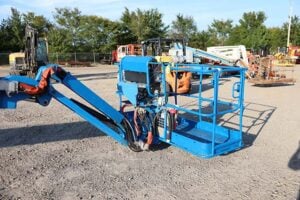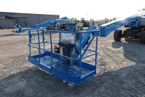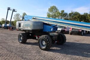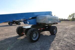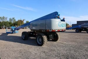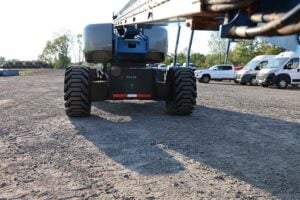 Deutz Turbo Diesel Engine – “No DEF” 74HP, 4WD, Foam Filled Tires, 45% Gradeability, Flashing Beacon, Generator & Welder Ready, JIB, 8′ Platform, Fall Arrest Protection System on Platform, Xtra Capacity – 660lbs Unrestricted & 1000lbs Restricted Platform Capacity, Fleet Maintained, Weight 40300lbs