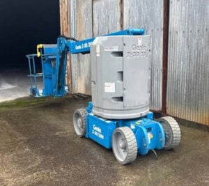 DC Electric Motor (Batteries), 2WD, 30% Gradeability, Solid Non-Marking Tires, 4’ Platform, Rotating JIB, 500lbs Unrestricted Max Platform Capacity, Fleet Maintained