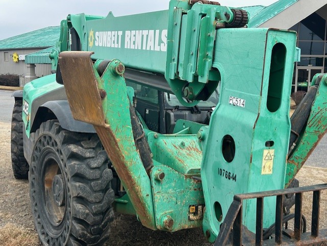 Factory Enclosed CAB w/ HEAT, Outriggers/Stabilizers, JCB Turbo Diesel Engine, Solid BOSS Tires, 4WD, Crab-Steering, Fenders, Work Lights, Lift Hook, Frame Leveling, Auxiliary Hydraulics, Quick Tach, QC Side-Tilting Carriage w/ Forks, Fleet Maintained