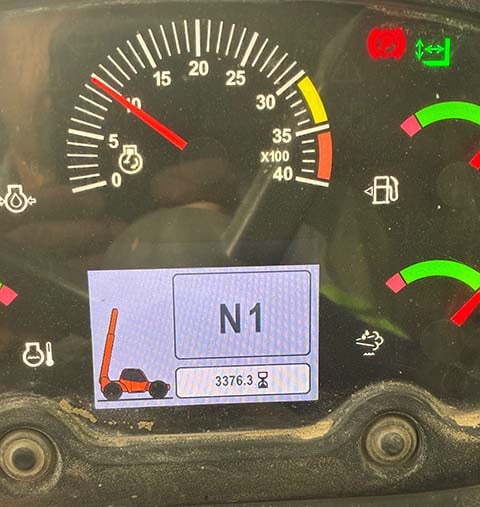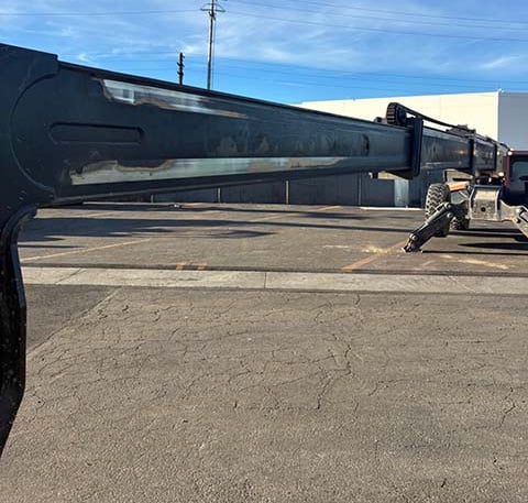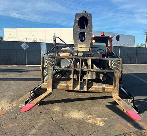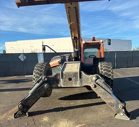 Outriggers/Stabilizers, Cummins Turbo Diesel Engine – 130HP, Foam Filled Tires, 4WD, Crab-Steering, Lift Shackle, Frame Leveling, Auxiliary Hydraulics, Quick Tach, QC Carriage w/ Forks, Fleet Maintained