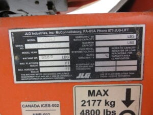 Kubota Diesel Engine, 4WD, Foam Filled Tires, 45% Gradeability, JIB, 5’ Platform, 500lbs Unrestricted Max Platform Capacity, Fleet Maintained, Weighs 9560lbs
