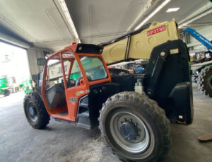 Cummins Turbo Diesel Engine- “No DEF” 74HP, Foam Filled Tires, 4WD, Crab-Steering, Frame Leveling, Auxiliary Hydraulics, Quick Tach, QC Carriage w/ Forks, Fleet Maintained