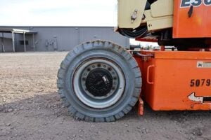 DC Electric Motor (NEW Batteries), 30% Gradeability, 2WD, Solid Non-Marking Tires, 4’ Platform, 500lbs Unrestricted Max Platform Capacity, Fleet Maintained, Weighs 15340lbs