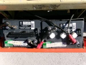 DC Electric Motor (NEW Batteries), 2WD, NEW Solid Non-Marking Tires, Deck-Extension, Power to Platform, Indoor & Outdoor 500lbs Lift Capacity, Weighs 2815lbs