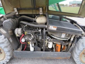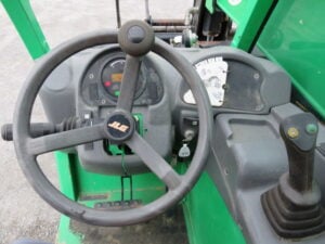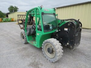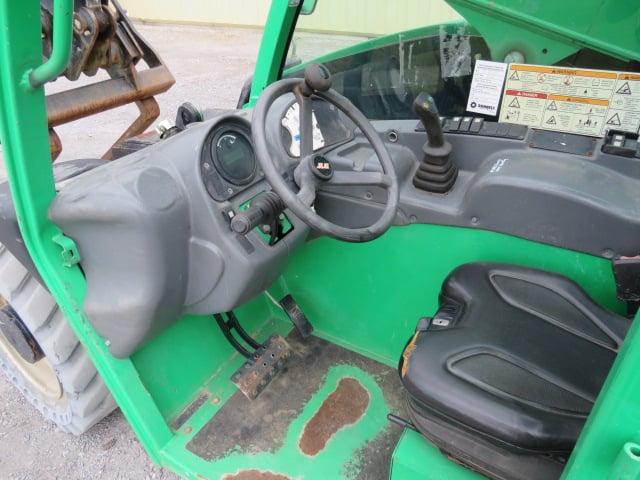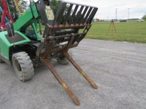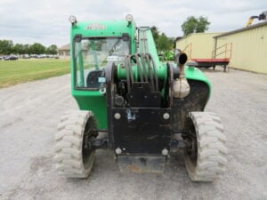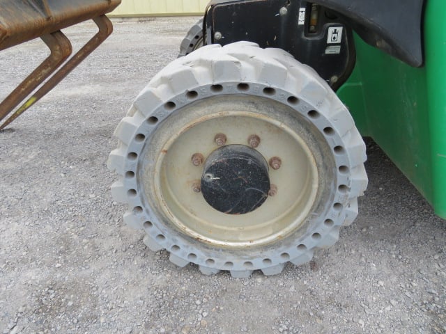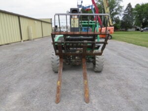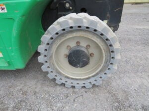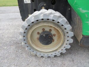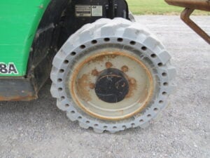 Deutz Diesel Engine – “No DEF” 74HP, Non-Marking Solid BOSS Tires, 4WD, Crab-Steering, Auxiliary Hydraulics, Quick Tach, QC Carriage w/ Forks, Fleet Maintained, Weighs 12500lbs