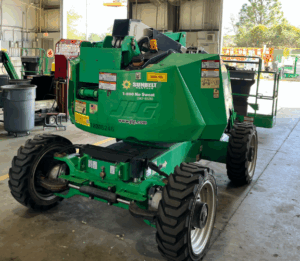 Hybrid – DC Electric – Batteries w/ Kubota Pup Motor (To Recharge Batteries), 4WD, Foam Filled Tires, 45% Gradeability, JIB, 5’ Platform, 500lbs Unrestricted Max Platform Capacity, Fleet Maintained