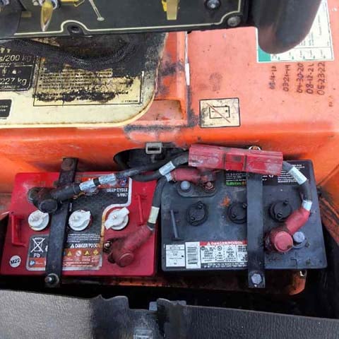 DC Electric Motor (Batteries), Auto Self-Leveling Hydraulic Outriggers/Stabilizers, Joystick Controller, JIB, 4’ Rotating Platform, Fleet Maintained, Weighs 3750lbs