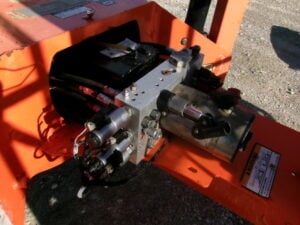 DC Electric Motor (Batteries), Auto Self-Leveling Hydraulic Outriggers/Stabilizers, Joystick Controller, JIB, 4’ Rotating Platform, Fleet Maintained, Weighs 3710lbs