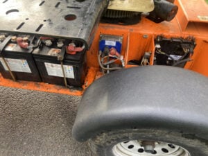 DC Electric Motor (Batteries), Auto Self-Leveling Hydraulic Outriggers/Stabilizers, Joystick Controller, Spare Tire, 4’ Rotating Platform, Fleet Maintained, Weighs 3710lbs
