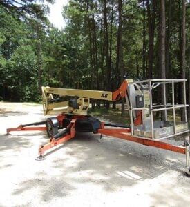 DC Electric Motor (Batteries), Auto Self Leveling Hydraulic Outriggers/Stabilizers, Joystick Controller, Spare Tire, JIB, 4′ Rotating Platform, Fleet Maintained, Weighs 5205lbs