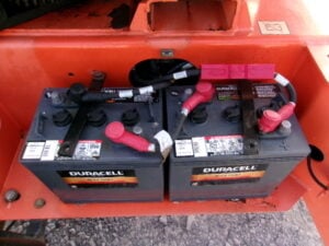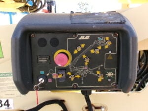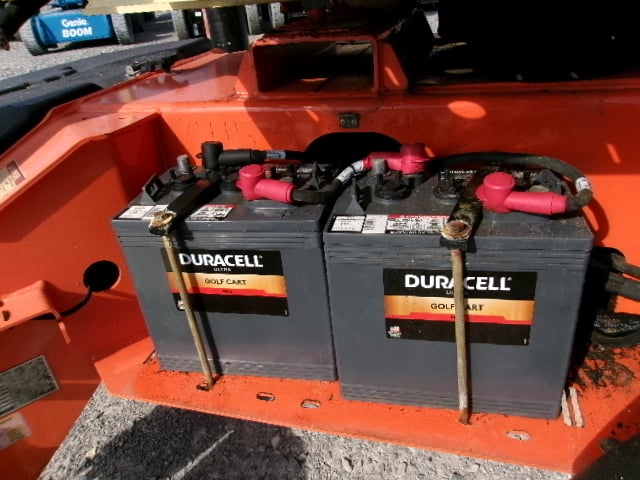 DC Electric Motor (Batteries), Auto Self Leveling Hydraulic Outriggers/Stabilizers, Joystick Controller, Spare Tire, JIB, 4′ Platform, Fleet Maintained, Weighs 5240lbs