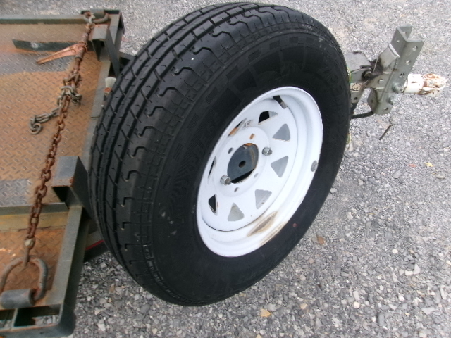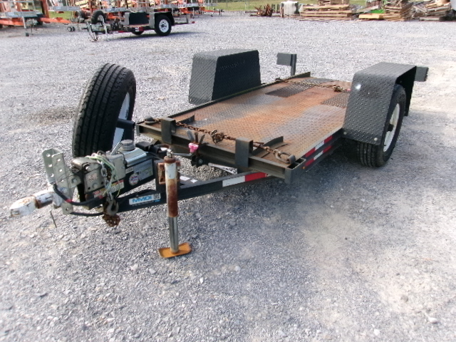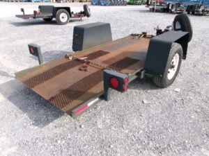 10 ft S/A Tilt Deck Trailer, 5.2k Axle, Radial Tires, Ball Hitch, Spring Suspension, Hydraulic Dampening System, Surge Brakes, Spare Tire, 2x Chains & Binders, Capacity 2980lbs, Weighs 1320lbs