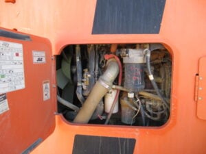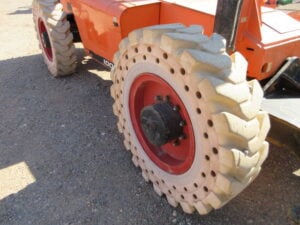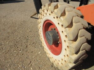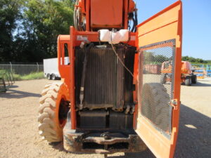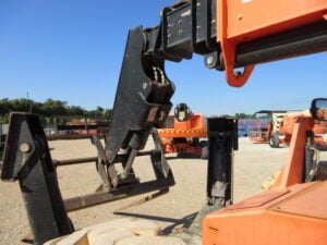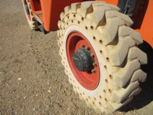 Outriggers/Stabilizers, Cummins Turbo Diesel Engine – 110HP, Non-Marking Solid BOSS Tires, 4WD, Crab-Steering, Frame Leveling, Auxiliary Hydraulics, Quick Tach, QC Carriage w/ Forks, Serviced (@2825 Hrs 9/24), Fleet Maintained, Weighs 31500lbs