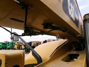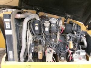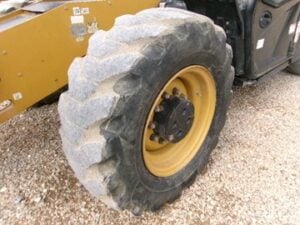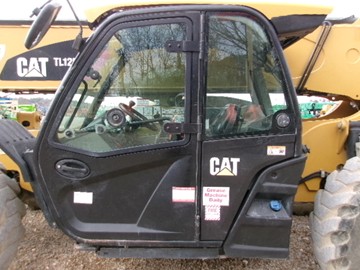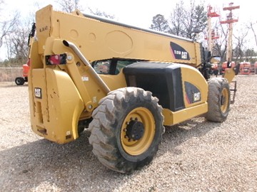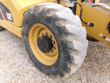 Factory Enclosed CAB w/ HEAT & AC, Outriggers/Stabilizers, CAT Turbo Diesel Engine, 140HP, NEW Foam Filled Tires (Being Installed), 4WD, Work Lights, Crab-Steering, Frame Leveling, Auxiliary Hydraulics, Quick Coupler, Hydraulic QC Carriage w/ Forks, FRESH Service (Fluids & Filters), CAT Fleet Maintained, Weighs 38125lbs