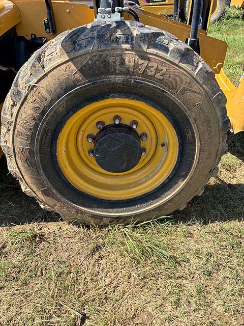 Factory Enclosed CAB w/ HEAT & AC, Outriggers/Stabilizers, CAT Turbo Diesel Engine, Foam Filled Tires, 4WD, Crab-Steering, Work Lights, Flashing Beacon, Frame Leveling, Auxiliary Hydraulics, Hydraulic Quick Coupler Carriage w/ Forks, CAT Fleet Maintained