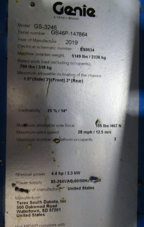 Home – Products – Scissor Lifts – 2019 Genie GS-3246 – Used Scissor Lift