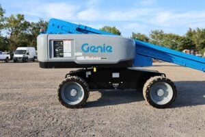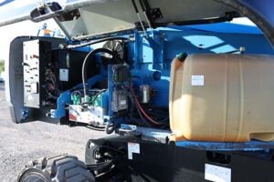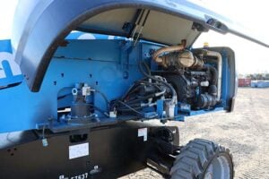 Deutz Turbo Diesel Engine – 48HP, 4WD, Foam Filled Tires, Gradeability 45%, Flashing Beacon, JIB, 8′ Rotating Platform, Fall Arrest Protection System on Platform, 500lbs Unrestricted Max Platform Capacity, Fleet Maintained, Weighs 23549lbs